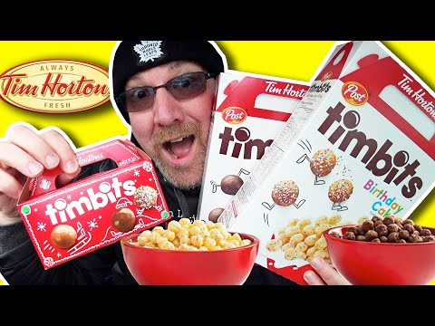 Timbit Cereal 🍩🎂 Chocolate Glazed & Birthday Cake from Tim Hortons - Tim Hortons Timbits - Timbit Cereal Chocolate Glazed & Birthday Cake from Tim Hortons Check out the Tim Hortons Playlist: https://goo.gl/OXDUH0 Subscribe to ...